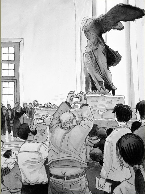 Voici une bien drôle histoire que celle de ce surveillant et de cette confrérie de la République du Louvres. L’histoire est originale et nous fait découvrir le Louvres à travers les yeux de ceux qui y vivent tout au long de l’année. Une autre manière d’appréhender l’un des plus beaux musées du monde, de s’interroger sur le « star système » des œuvres, des sculptures, sur nos comportements devant tant d’œuvres qui racontent une partie de l’histoire de l’humanité. Le récit de Davodeau est vivant, drôle, humain. Les personnages sont vrais, actuels, souvent fantasques mais jamais dans la caricature. Il donne de l’existence aux invisibles du musée, ces hommes et ces femmes qui surveillent ces trésors, mais aussi à une grande quantité d’œuvres qui placées à côté « des vedettes » (comme la Joconde) sont délaissées, ignorées. La République du Louvres est également une belle trouvaille qui nous interroge sur la notion de « chefs d’œuvres » dans les musées et dans nos cœurs. Qu’est-ce qui caractérise la beauté d’une œuvre et son succès auprès du public ?