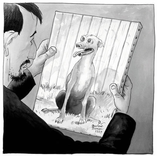 Puisqu’ils ont désormais sous la main un «expert», les Benion tiennent absolument à soumettre à Fabien un tableau qui moisit dans le grenier depuis des décennies, et qui a été peint par l’aïeul Gustave. Une pauvre toile représentant un chien qui louche.