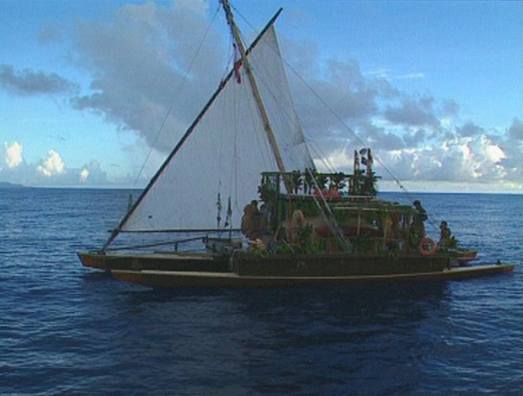 Les skippers des pirogues et des bateaux accompagnateurs se réunissent une dernière fois avant le départ. Ils examinent la route à suivre, les conditions météo. Nainoa donne les dernières instructions en matière de sécurité. Axel, le skipper tahitien, fait triste mine, son bateau escorte vient de casser son moteur. Tahiti Nui, superbe pirogue d’apparat, s’arrêtera aux îles Marquises. Poursuivre serait déraisonnable.
