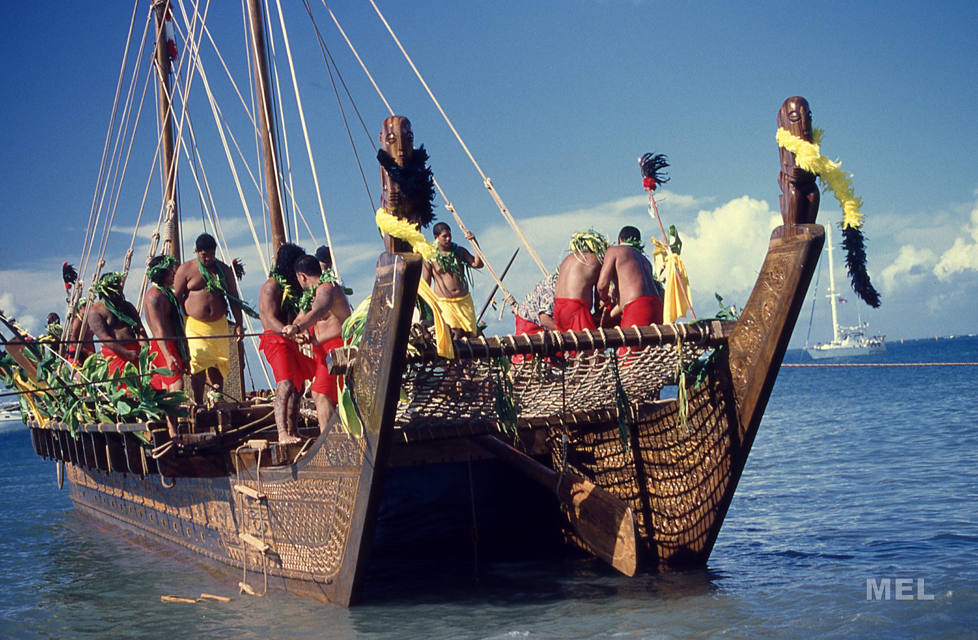 « Notre voyage de Hawaii aux îles Marquises est très important car nous croyons traditionnellement que les premiers habitants de Hawaii venaient d’ici. Nous avons essayé de venir ici en 1987, mais lorsque nous sommes arrivés à Rangiroa, les 21 jours suivant nous n’avons pas eu le moindre vent, raconte Nainoa. Cette fois-ci nous voulions être sûr d’y arriver, aussi nous nous sommes dit que nous naviguerions à la voile si le vent était bon et que nous nous ferions tirer si le vent n’était pas bon. Notre objectif était d’arriver aux Marquises, afin de célébrer ces anciens, les premiers à être venus à Hawaii. Malheureusement le vent n’était pas au rendez-vous. »