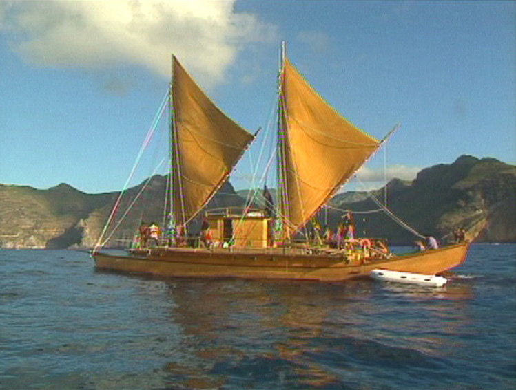 L’homme de la prochaine escale est Tava (Equipier Hokule’a) : « Nainoa m’a dit… II est mon père… Il a emmené la pirogue dans toutes les îles du Pacifique. Nous sommes allés de Hawaii à Tahiti, aux Samoa. Lorsqu’il a dit nous retournons à Tahiti, je lui ai dit : c’est mon dernier voyage. Ce serait bien d’aller à Nuku Hiva.