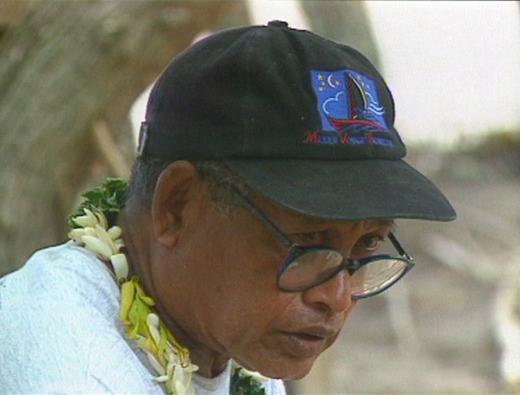 Depuis, nous étions terrorisés par l’océan. Aussi, le seul moyen… pour moi de combattre cette peur fut de prendre la mer. Quand Hokule’a vint pour la première fois à Rarotonga, j’étais un jeune garçon. L’équipage m’a vu sur le quai et m’a demandé de venir les aider sur la pirogue. Lorsqu’ils sont revenus à… Rarotonga, ils avaient besoin d’un membre d’équipage de l’île. Ils m’ont proposé la place. Je suis rentré chez moi et j’ai dit à ma mère et ma grand mère que je partais sur Hokule’a. Elles ont dit « non ». Mais je devais y aller, pas seulement pour moi, mais pour mes enfants.