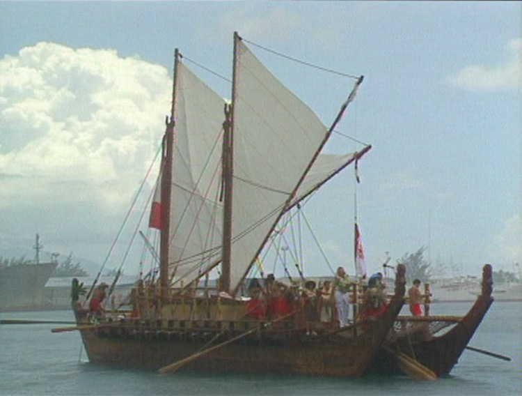 « L’idée de construire cette pirogue est née dans les années 50, lorsqu’un Néo-Zélandais, Andrew Sharp a publié son livre : “Les voyageurs anciens du Pacifique”. Cet écrit parle de la colonisation de la Polynésie, mais dans ce livre, il dit que tout ce qu’on raconte sur les Polynésiens qui étaient de grands navigateurs est faux. Que c’est un mythe, un mythe européen car on ne peut vraiment pas dire que ces pirogues naviguaient bien, et qu’il est impossible de naviguer sans boussole. » J’ai lu ce livre quand j’étais étudiant à l’université de Hawaii en anthropologie, et je me suis dit ce n’est pas vrai. J’ai lu les livres, les livres de Peter Beck et tous ceux des grands écrivains du 19ème siècle et du XXème siècle sur les Polynésiens. J’étais un peu lié, disons romantiquement à ce sujet. J’ai alors réalisé qu’il était impossible de lutter contre sa thèse, les pirogues n’existent plus et les navigateurs sont morts. Il fallait donc reconstruire les pirogues et apprendre à naviguer sans instrument avec elles. Nous avons donc décidé de construire un bateau, un pahi, une pirogue double, pour aller de Honolulu à Tahiti et retour sans boussole, et nous avons commencé à collecter de l’argent. La pirogue fut baptisée il y a presque 20 ans maintenant. En 1976, nous avons fait notre premier voyage. Financièrement c’était très difficile, mais de jeunes Hawaiiens se sont intéressés au projet et ont dit : ah! Il ne faut pas laisser la pirogue à Honolulu, il faut lui faire parcourir les mers. Ainsi en 1980, un jeune Hawaiien, Nainoa Thompson a pris le commandement de la pirogue. »
