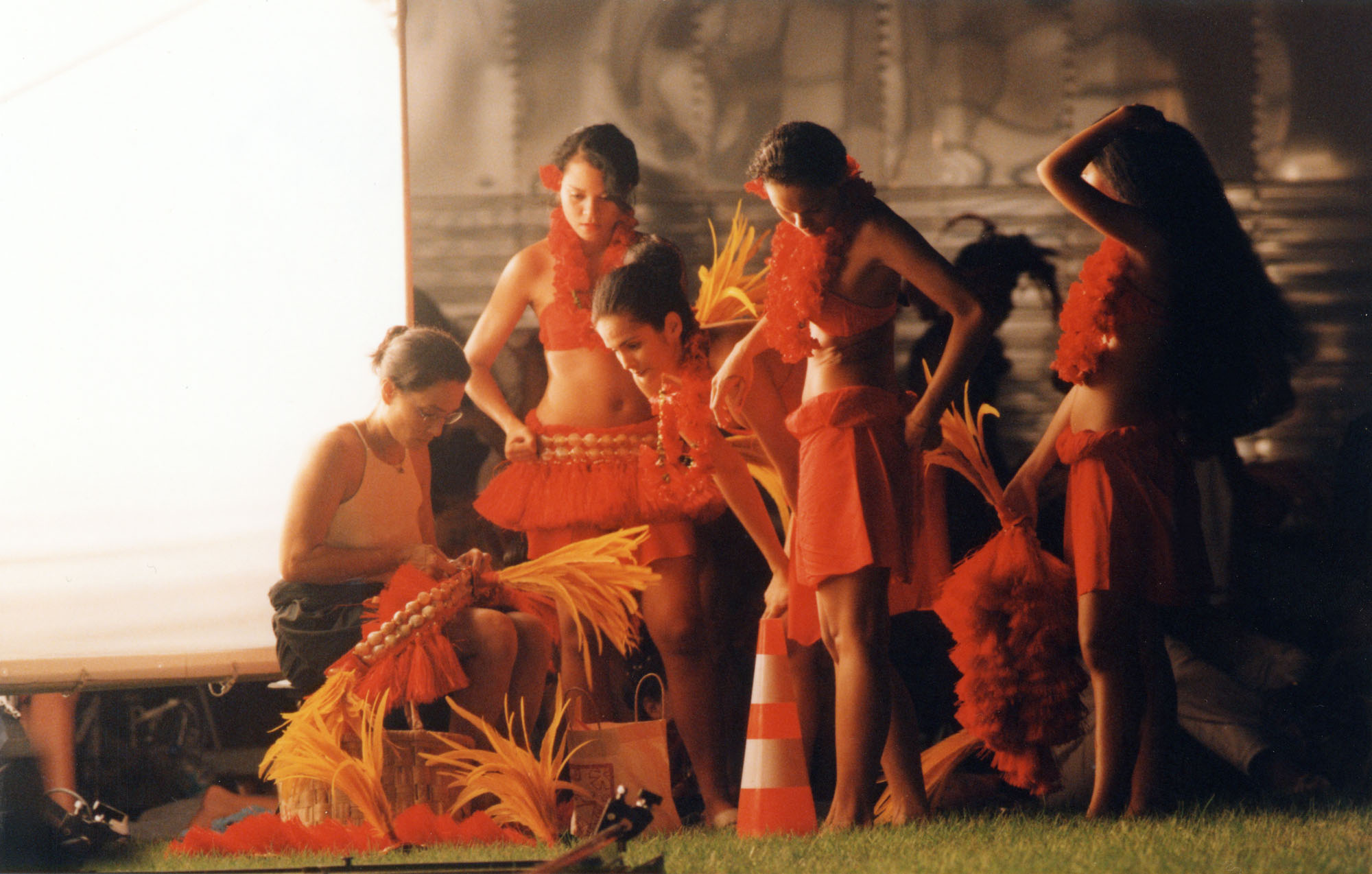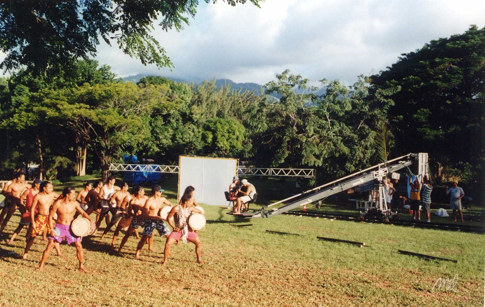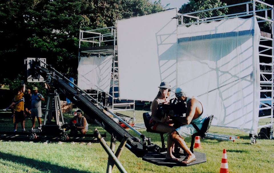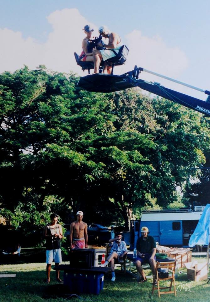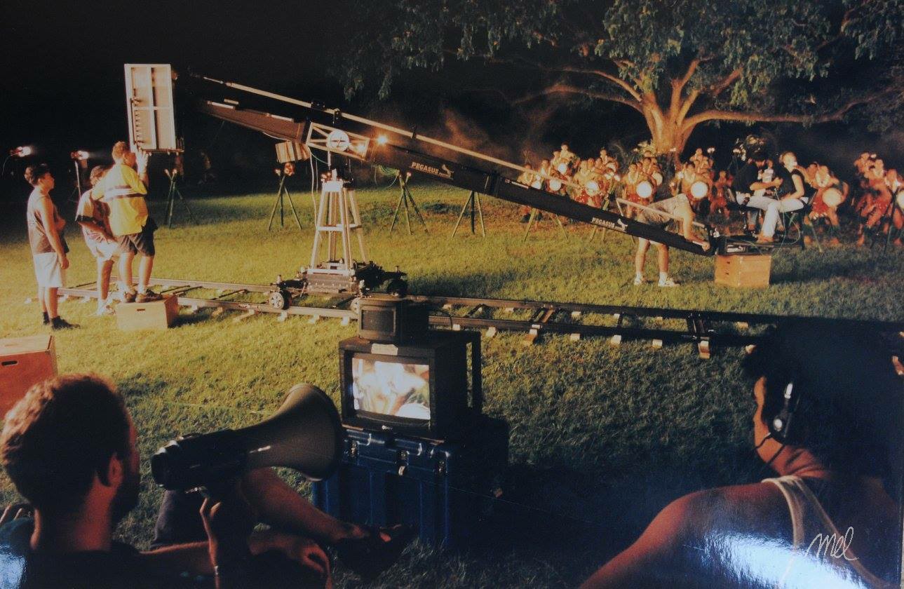 Conrad régla la lumière de la grande séquence de nuit, partie finale du film, la fête au village que nous tournions dans le parc du Tahara’a. A l’époque, sur Tahiti, il y a une société de location de matériel de tournage, qui nous fournit le groupe électrogène, les projecteurs HMI, les réflecteurs géants et une grue Pegasus. Un tournage ambitieux qui dura toute la nuit, avec des moyens qui nous dépassaient un peu, mais que Conrad maîtrisait parfaitement et l’équipe se montra à la hauteur.