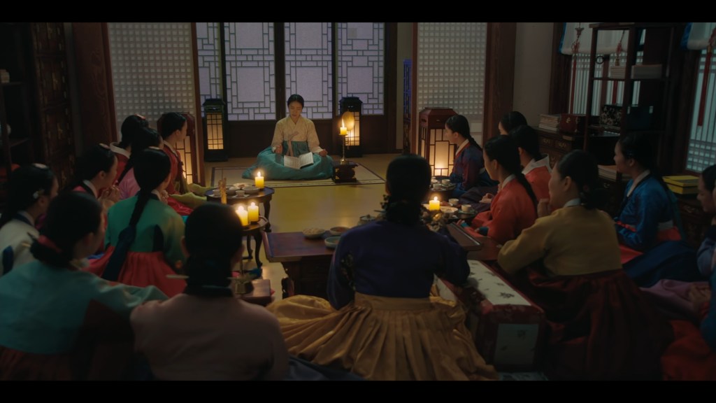 Mais au-delà de la simple introduction comique, cette ouverture fonctionne comme une véritable mise en abyme des séries coréennes elles-mêmes. En montrant ces femmes absorbées dans les récits sentimentaux de Maehwa, le drama offre un miroir amusant aux spectateurs contemporains, qui eux-mêmes suivent avidement les péripéties romantiques de leurs idoles à travers les K-dramas. Cette scène met ainsi gentiment en évidence la passion des fans, leur investissement émotionnel intense, ainsi que la manière dont ils peuvent vivre par procuration les émotions des personnages.