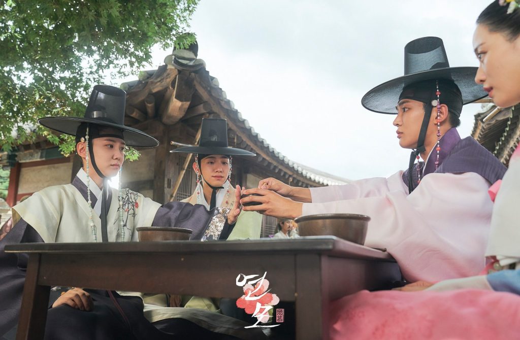 Parallèlement, la série développe largement l’arc amoureux entre Dam-i (Lee Hwi) et Jung Ji-woon. Cet amour complexe met en lumière les thèmes liés à l’homosexualité supposée, au genre et à l’identité. Ji-woon, croyant aimer un homme, se débat avec ses sentiments, tandis que Dam-i lutte avec sa propre identité, tiraillée entre devoir royal, peur d’être découverte, et désir profond d’exprimer son amour véritable. Leur romance constitue l’un des éléments centraux de la série, apportant une tension émotionnelle constante tout en défiant les normes sociales confucéennes strictes.
