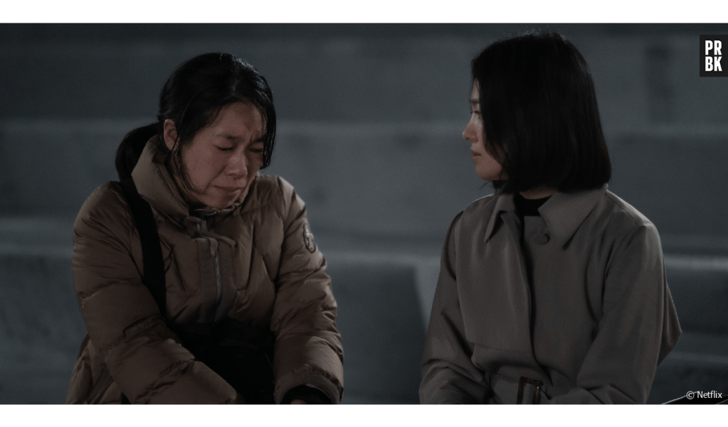 Il y a aussi un vrai travail sur la gestion du silence, des non-dits, des pauses. Ahn Gil-ho sait quand s’effacer pour laisser l’acteur parler sans mots. Il donne à Song Hye-kyo l’espace pour jouer la retenue, le traumatisme figé, puis la libération lente, sans jamais verser dans le mélodrame. Il dirige aussi très bien les « méchants » : Lim Ji-yeon (Park Yeon-jin) passe de l’assurance froide à une perte de contrôle saisissante, sans caricature. Même les personnages secondaires, comme Hyeon-nam ou Ha Do-yeong, ont des trajectoires internes claires et visibles, sans que cela soit souligné artificiellement.