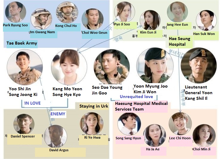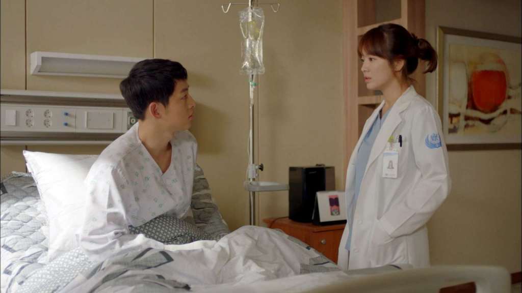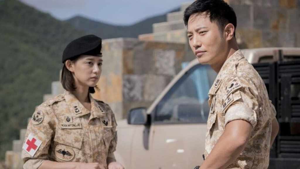Le premier arc est celui de la confrontation entre le devoir professionnel et la vie sentimentale. Kang Mo-yeon et Yoo Shi-jin tombent amoureux dans un cadre civilisé, à Séoul, mais leurs vies sont trop différentes : elle veut sauver des vies, il est prêt à tuer pour défendre son Pays. Ce dilemme éthique est d’autant plus aigu que la série refuse de trancher : elle montre à la fois l’indispensable nécessité d’une armée et l’inconfort moral que cela impose à ceux qui la composent. Ce désaccord fondamental les sépare. Mais lorsqu’ils se retrouvent à Uruk, l’environnement dramatique fait ressortir leur complémentarité. Leur amour renaît au contact de la mort, non plus comme une fuite, mais comme une reconnaissance mutuelle des sacrifices et des blessures que chacun porte.