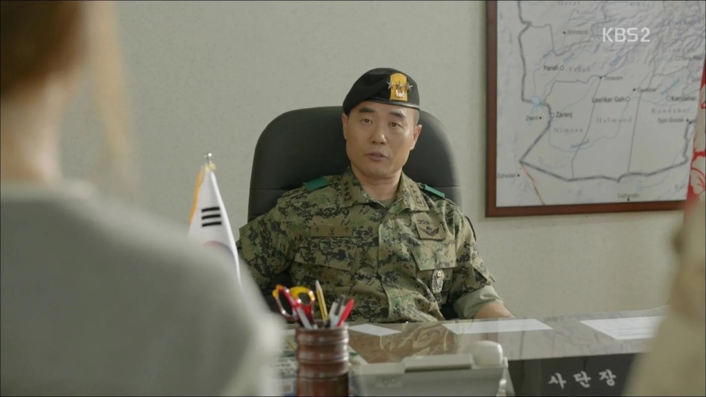 Le commandant en second Choi Woo-geun, joué par Park Hoon, est un officier rigide, loyal mais souvent dépassé par les événements. Il incarne la hiérarchie militaire traditionnelle, mais aussi la fatigue et les responsabilités d’un soldat de carrière. C’est un élément de stabilité au sein du bataillon, et un contraste utile avec le style plus détendu de Yoo Shi-jin. Son personnage permet d’explorer les dilemmes liés à la chaîne de commandement et à l’obéissance dans des situations de crise, notamment lorsque des décisions humanitaires ou stratégiques doivent être prises dans l’urgence.
