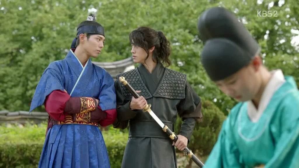 Une scène particulièrement marquante de Love in the Moonlight est celle du sacrifice de Kim Byung-yeon, personnage taciturne et loyal, dont la fidélité silencieuse prend soudain une dimension bouleversante. Lorsqu’il se retrouve confronté à un dilemme insoutenable — obéir à son prince ou protéger Ra-on, dont il connaît le secret et la vulnérabilité — il choisit de braquer son sabre contre Lee Yeong lui-même, dans un geste à la fois symbolique et désespéré. Ce moment suspendu, où Byung-yeon menace le prince héritier, bouleverse les rapports de force établis. Ce n’est plus un garde du corps face à son maître, mais un homme prêt à trahir tout ce qu’il représente pour sauver une innocente.