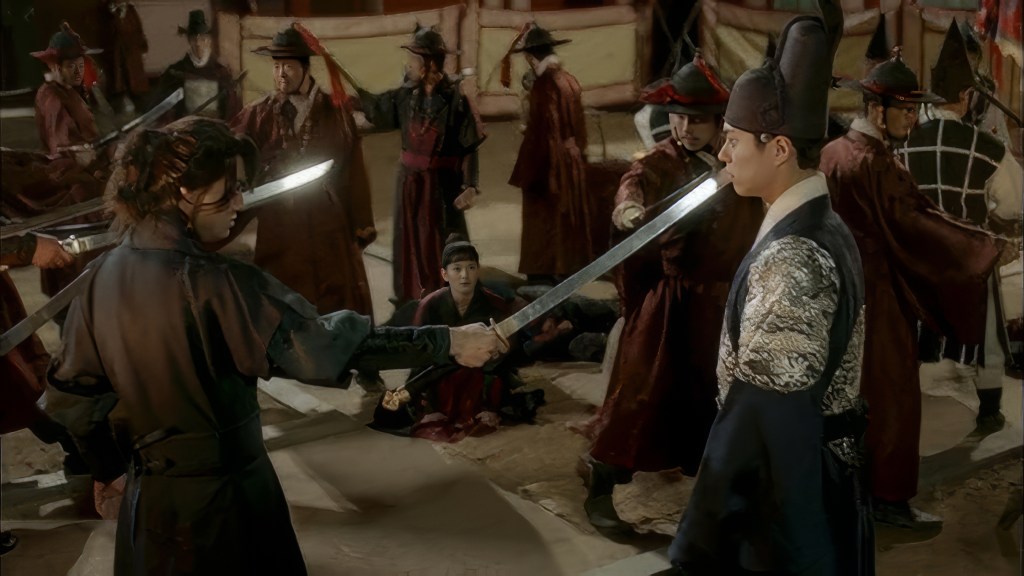 Comme dans Le Cid, le couple se retrouve confronté à des choix impossibles. Aimer l’autre, c’est trahir son nom, sa fonction, voire sa sécurité. Ne pas l’aimer, c’est renier ce qui le rend humain. Les deux œuvres explorent donc la même tragédie du choix entre amour et responsabilité, entre désir et devoir. Le moment où Lee Yeong doit se détourner de Ra-on par raison d’État, ou celui où elle-même choisit de fuir pour ne pas compromettre sa position, sont des échos modernes des dilemmes cornéliens. Même la scène où Byung-yeon braque son sabre sur son prince pour protéger Ra-on rappelle ces situations où l’honneur et la loyauté entrent en collision violente.