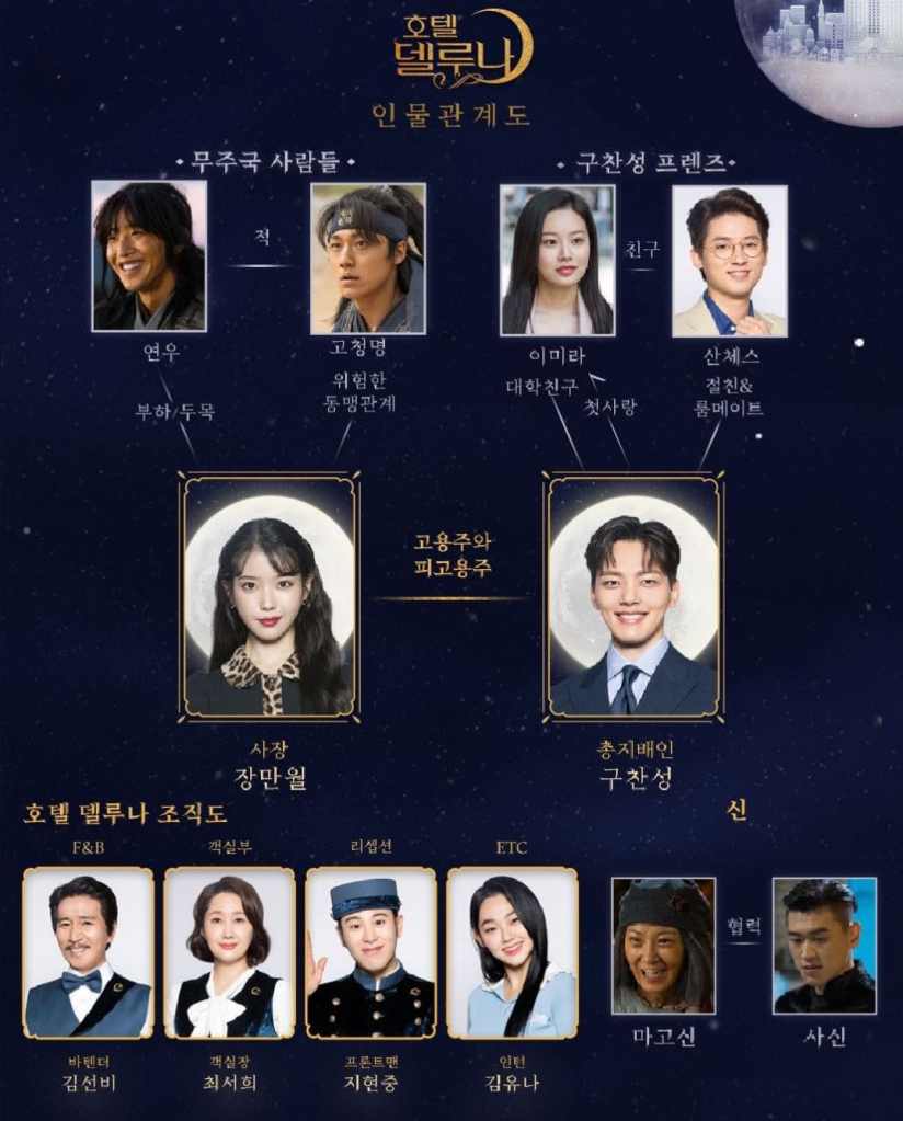 À sa tête se trouve Jang Man-wol, une femme immortelle condamnée depuis plus d’un millénaire à diriger l’hôtel en expiation de ses péchés passés. Jadis, elle fut une guerrière au cœur dévasté par la trahison et la vengeance. Prisonnière du ressentiment et du souvenir de ses amours brisées, elle est liée à un arbre mystique dont la floraison symbolise la fin de sa pénitence.